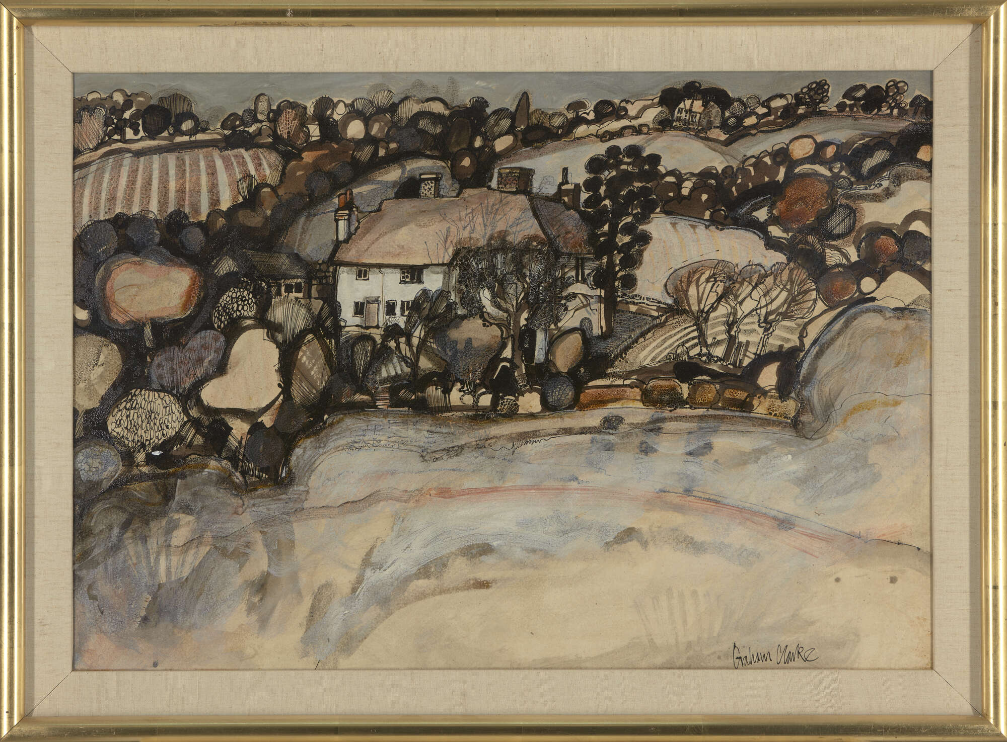 ink and gouache on card, signed lower right 'Graham Clarke', 51.5 x 74 cm (ARR)