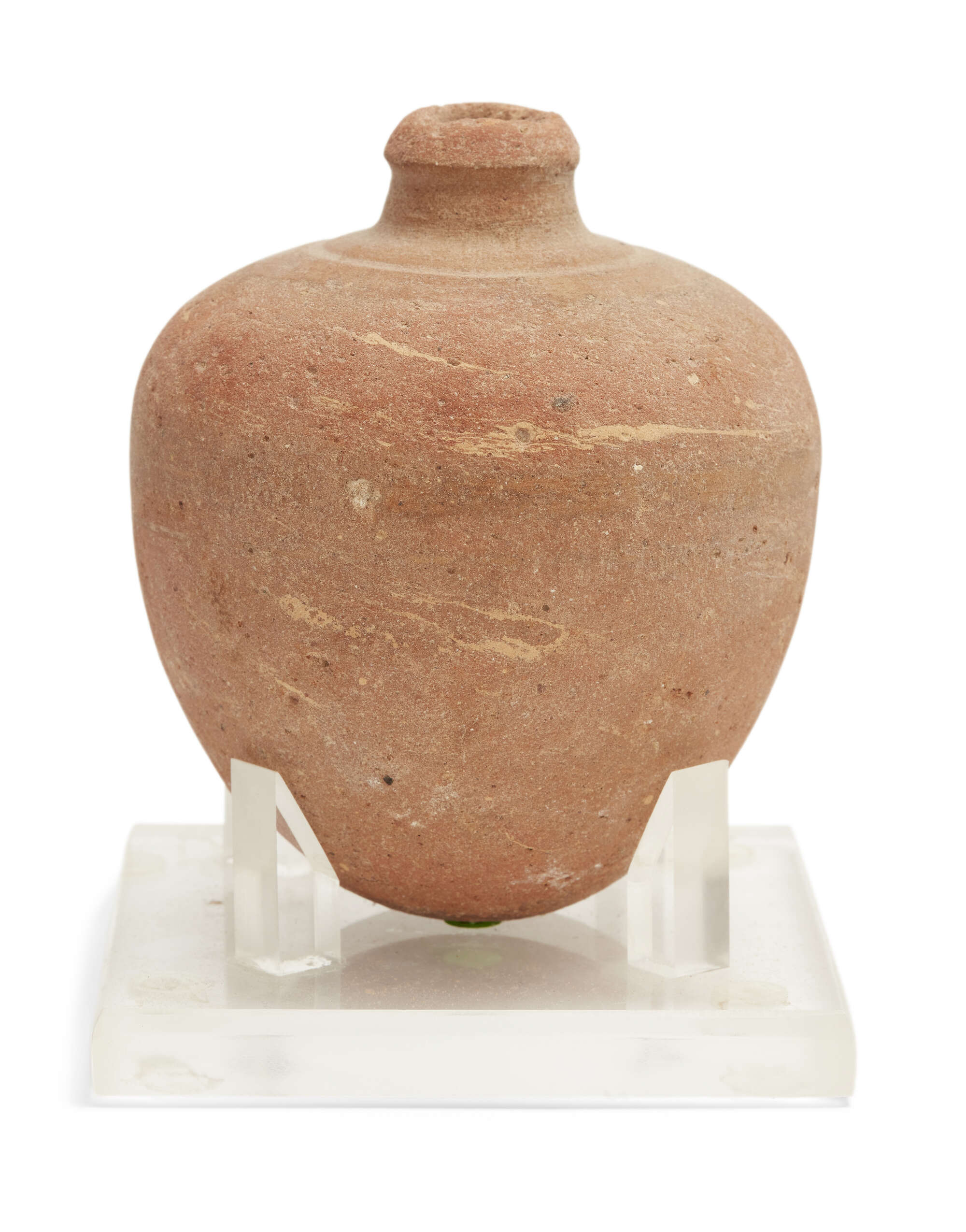 A Bronze Age buff pottery vessel Circa 1500-1200 B.C. With bulbous tapering body,...