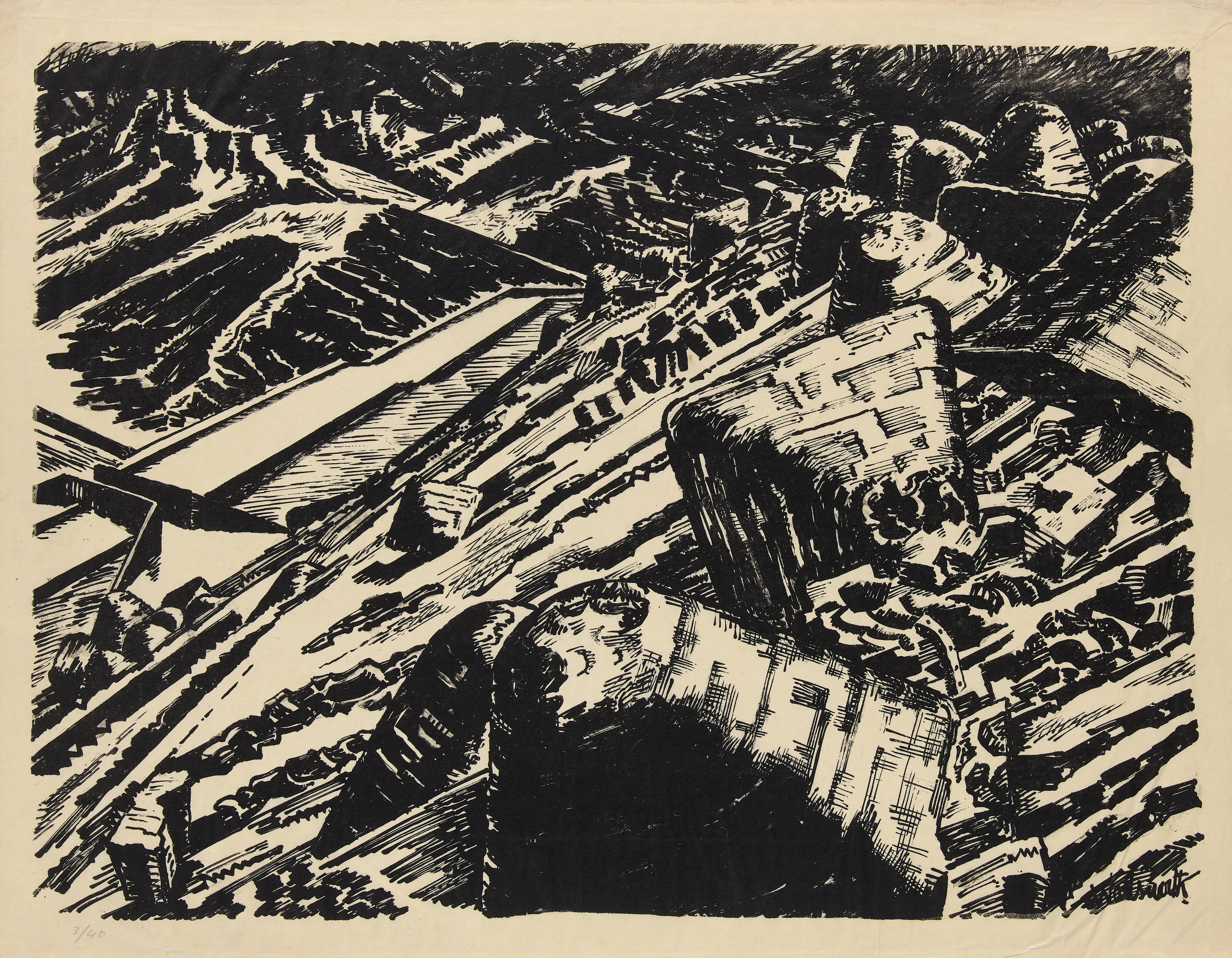 Edward Wadsworth ARA, British 1889-1949, Ladle Slag, Old Hill II, 1920; monochrome lithograph on...