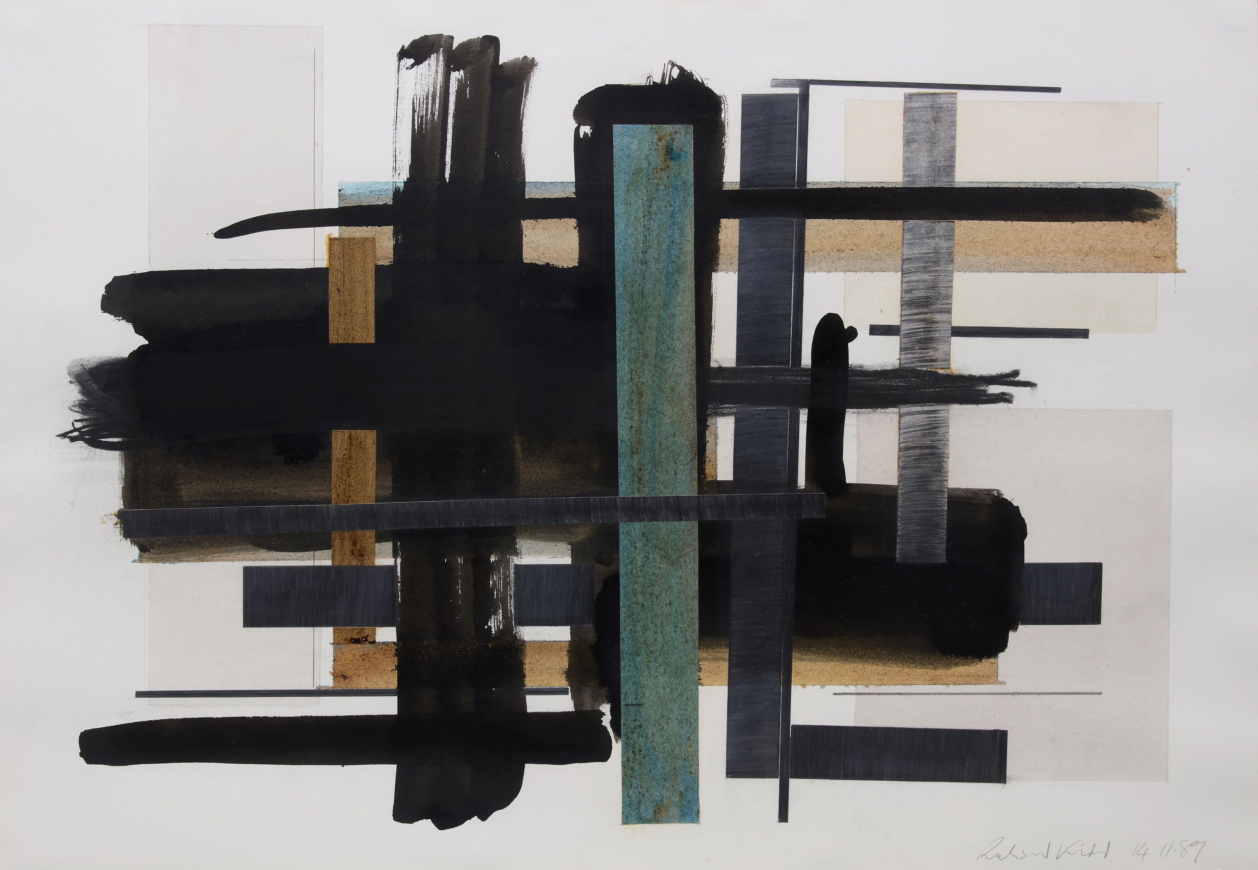 Richard Kidd, British 1952- 2008, Abstract, 1989; mixed media on wove, signed and dated 14.11.89 in...