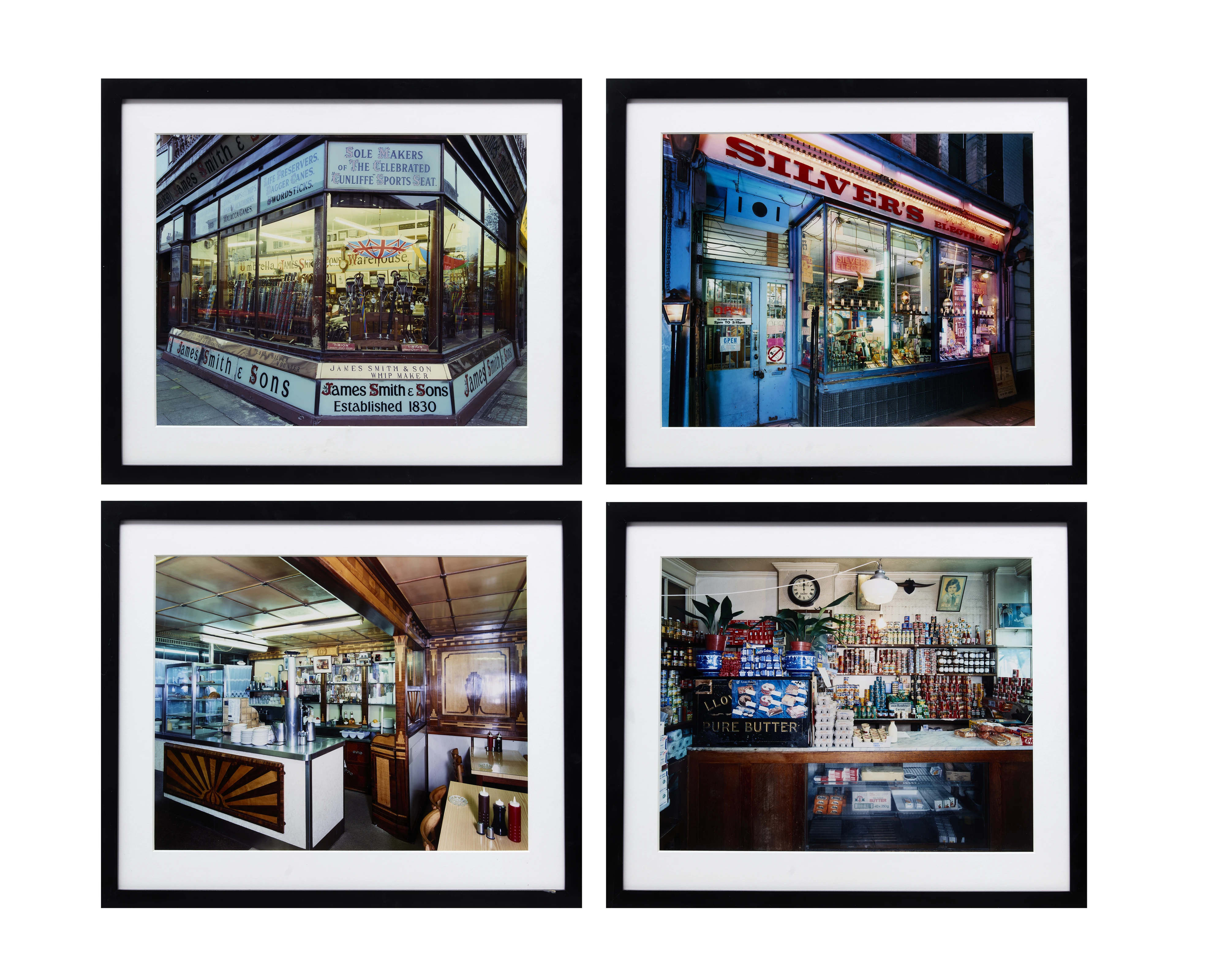 Silver's Electrics (Interior), Soho, London, 1993; James Smith Stick Shop, Bloomsbury, London, 1983; Lloyd's Butter & Egg Shop, London, 1983; and Peluci's Cafe Looking Forward, Bethnal Green London, 1993;