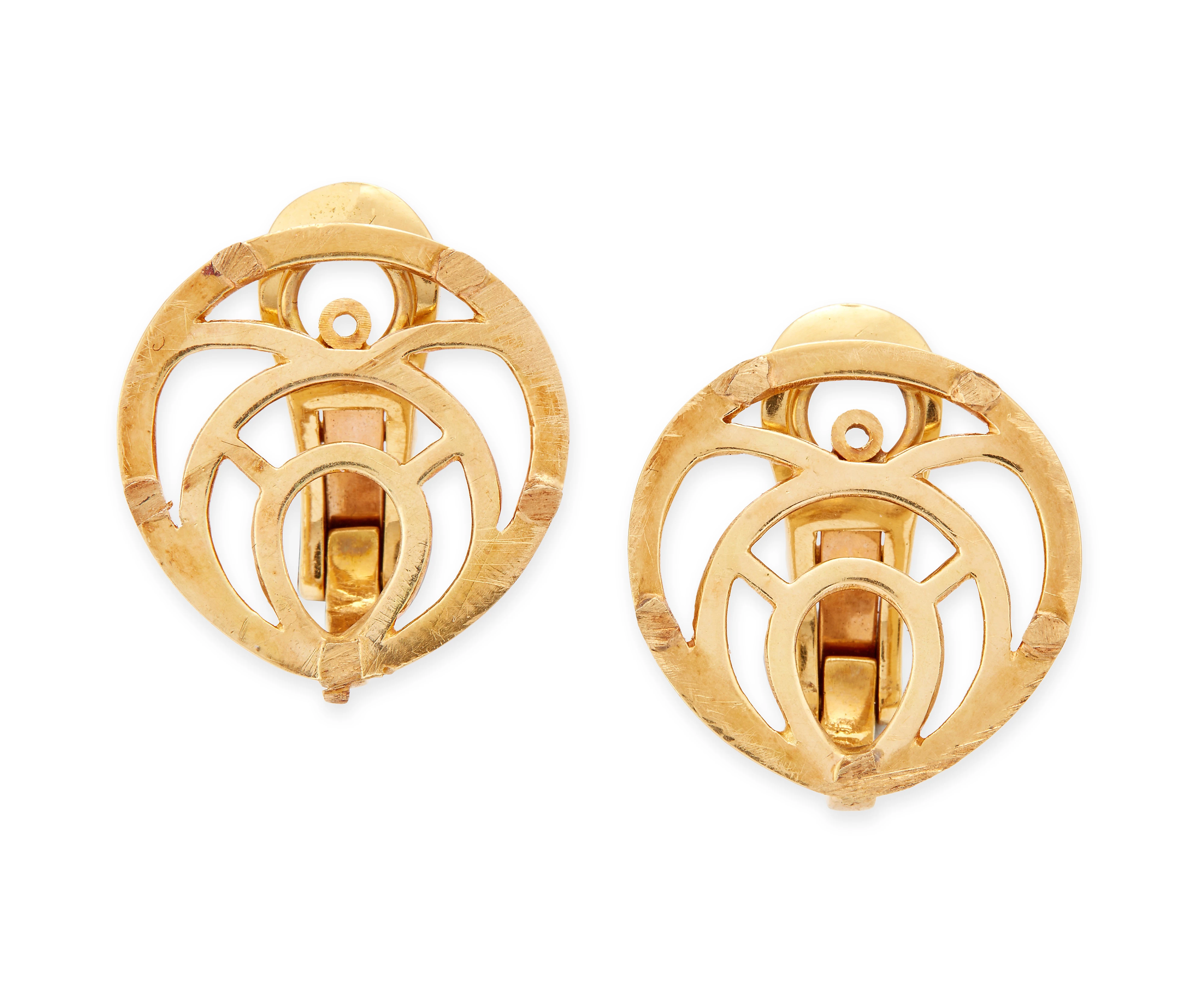View MoreA pair of earring fittings, designed as a pierced back plate with clip fittings, front panel...